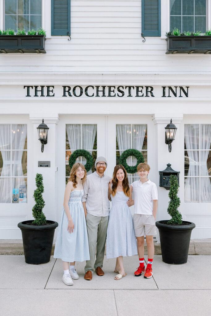 Our path to the Rochester Inn was serendipitous… We had delightful memories of visiting the Rochester Inn before the arrival of our first child, Milla, and we loved the idea of our children growing up with a family business of our own. We have been the proud owners and caretakers of this historic inn since 2016 and have loved every moment! Ray now works at the Sheboygan County Economic Development Corporation as a Business Counselor and also serves on the board of the Sheboygan Falls Chamber-Main Street. You’ll often find Ray in the kitchen, creating delicious new breakfast recipes for our guests, or working around the inn and the gardens, carefully maintaining our 171-year-old building. Kelly has left the corporate world to focus all of her energy on our inn and our family and loves welcoming our guests with true Wisconsin hospitality. She is also passionate about ensuring that the inn, and each guest room, is thoughtfully decorated and appointed to ensure a cozy and luxurious stay. You may spot our entire family at the inn on the weekends, as we love to spend time here together. The Rochester Inn is truly our dream come true!